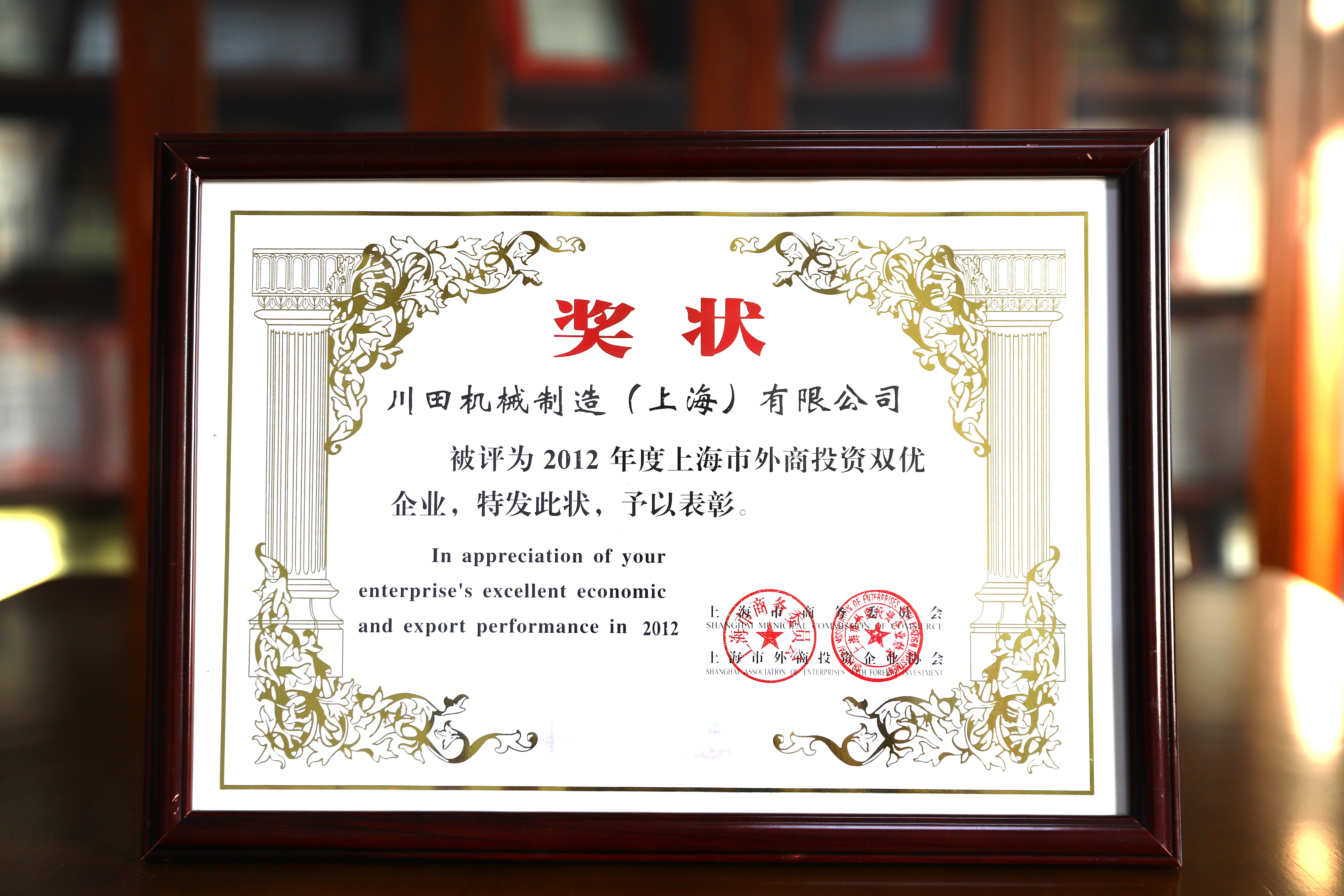 2012年度上海市外商投資優(yōu)秀企業(yè)